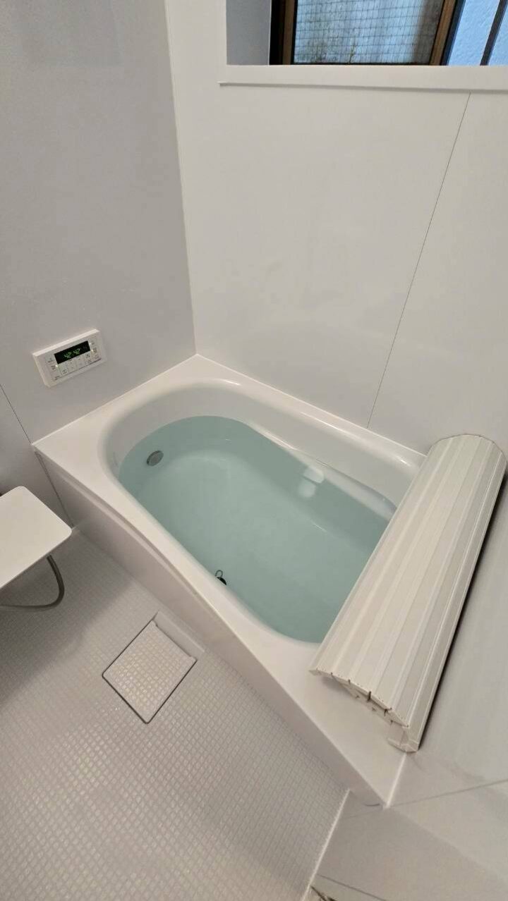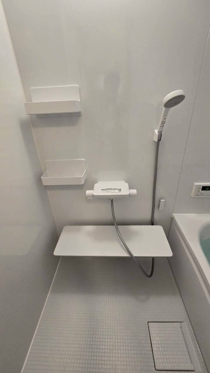 施工後の浴室は、白を基調とした明るく清潔感のある空間へと生まれ変わりました。広めの浴槽でゆったりと入浴できるようになり、壁面の収納棚や操作パネルも使いやすく、日々の入浴が快適になったとお喜びいただいています。カビの発生も抑えられる素材を使用しているため、掃除の手間も軽減されたとのことです。給湯器についても、湯温が安定し、操作パネルで簡単に調整できる点が非常に便利だとご評価いただきました。見た目の美しさだけでなく、機能面でも大きな改善が見られ、H様には「もっと早くお願いすればよかった」とのお言葉をいただきました。